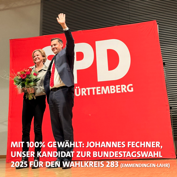 Einstimmig mit 100% haben wir am 23. November Johannes Fechner zum SPD-Bundestagskandidaten im Wahlkreis Emmendingen-Lahr nominiert.