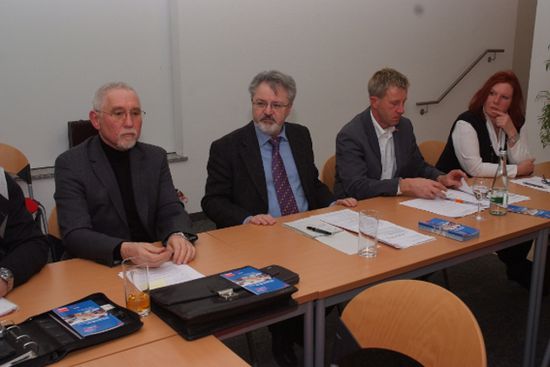v.l. Hans-Jörg Fahrner, Arved Sassnick, Andreas Frank, Monika SchneiderSPD diskutiert bei der Kreiskonferenz über Ausbildungsreife von Jugendlichen