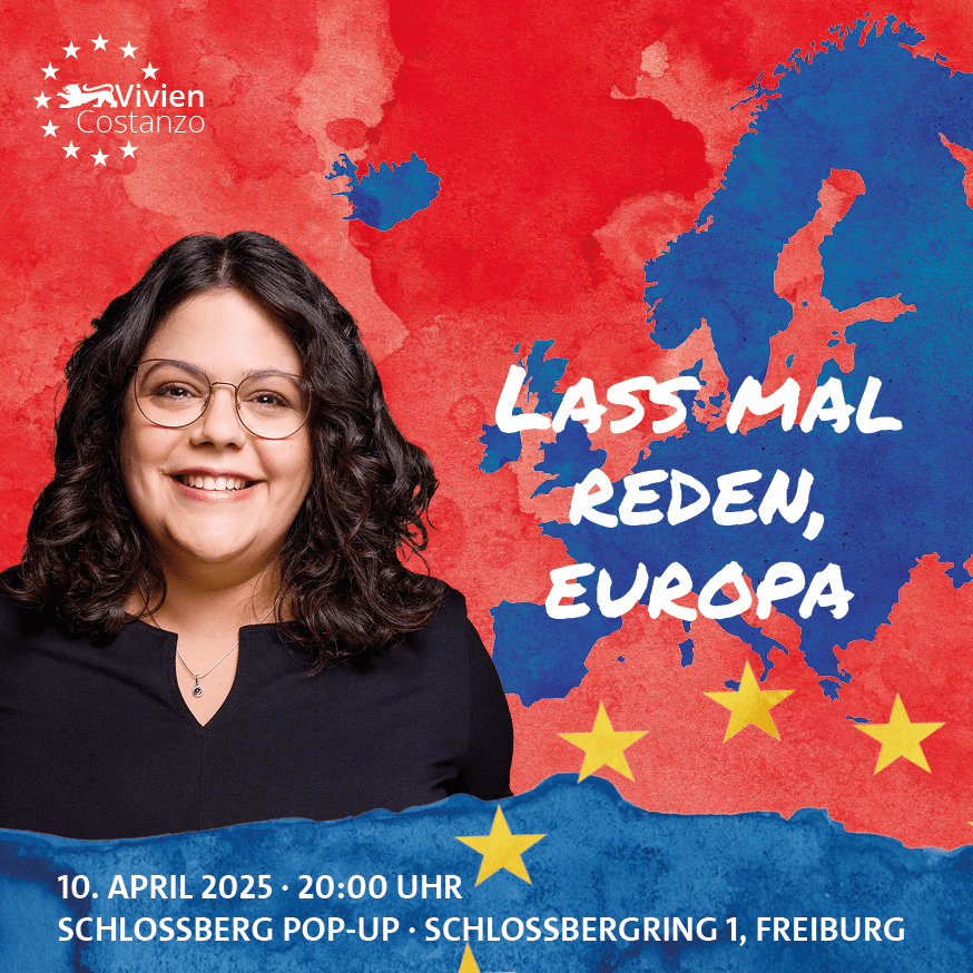 Unsere SPD-Europaabgeordnete Vivien Costanzo lädt ein auf einen entspannten Abend mit ganz viel Europa-Diskussion am Donnerstag, den 10. April ab 20:00 Uhr im Schlossberg-Pop-Up am Schlossbergring. Bei dem ein oder anderen Kaltgetränk wollen wir miteinander ins Gespräch kommen und natürlich die Ausstellungen im Pop-Up-Store anschauen.