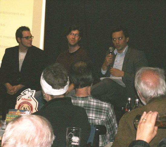 Pfaff thematisierte einleitend, ob Urheberrechtsverletzungen zukünftig nicht durch eine sogenannte Kulturflatrate reagiert werden solle und sprach sich gegen die Vorratsdatenspeicherung und Netzsperren aus. Johannes Fechner berichtete vor allem über die rechtlichen Situationen im Internet und erzählte von Fällen.