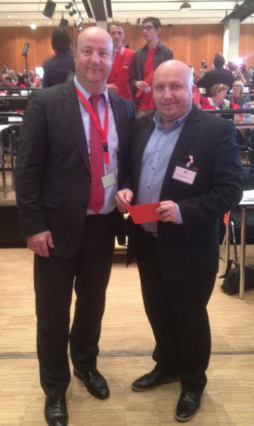 Das zukünftige Daimler-Technologiezentrum in Immendingen stand im Mittelpunkt des Gesprächs zwischen dem SPD-Kreisvorsitzenden und designierten Landtagskandidaten, Marcus Kiekbusch, und dem Vorsitzenden des Konzernbetriebsrates der Daimler AG, Michael Brecht, während des SPD-Landesparteitages am Samstag in der Stadthalle Singen. "Daimlers Investition von 200 Mio EUR ist ein Meilenstein für die Mobilität der Zukunft und für die weitere Entwicklung unserer wirtschaftsstarken Region", freute sich Marcus Kiekbsuch. Er lud Michael Brecht deshalb zu einem Besuch in Immendingen und im Wahlkreis Tuttlingen-Donaueschingen ein.