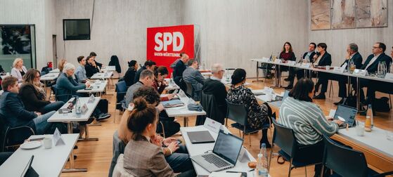 „Der Austausch mit Politiker:innen und Expert:innen auf Landesebene ist mir sehr wichtig, weil alle Entscheidungen, die wir in Berlin treffen natürlich Auswirkungen auf die Landesebene haben“, erklärt Saskia Esken. „In der Umsetzung sind wir immer auch auf die Mitarbeit der Landesregierungen angewiesen. Und jedes Mal, wenn die grün-schwarze Landesregierung hier ihre Pflicht verschläft, geht leider eine große Chance verloren, die Menschen im Land noch effektiver zu unterstützen.“