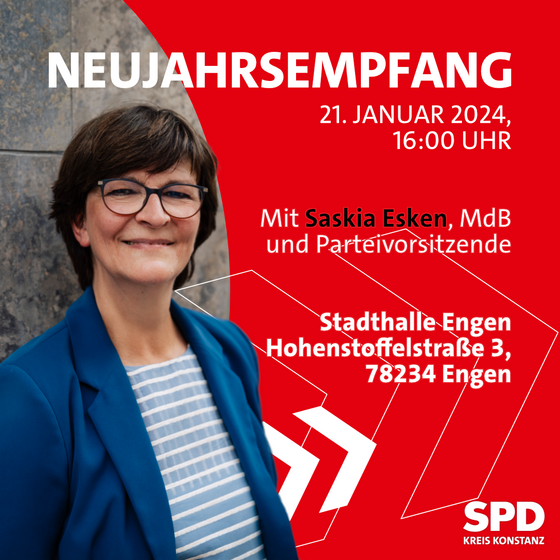 Wir freuen uns auf ein inspirierendes Zusammenkommen mit der Parteivorsitzenden und Bundestagsabgeordneten Saskia Esken. Gemeinsam möchten wir mit Ihnen und Euch allen in das kommende Jahr starten, das auch durch die anstehenden Kommunal- und Europawahlen geprägt sein wird. Wir kämpfen für mehr Respekt in der Gesellschaft, eine zukunftsorientierte Politik sowie starke Kommunen und Landkreise in einem vereinten Europa.