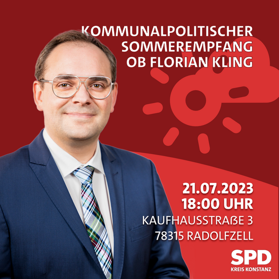 sehr gerne laden wir Euch zum zweiten Kommunalpolitischen Sommerempfang der SPD im Landkreis Konstanz ein. Am Freitag, den 21. Juli 2023, treffen wir uns dazu um 18:00 Uhr gemeinsam im Zunfthaus (Kaufhausstraße 3) in der wunderschönen Radolfzeller Altstadt.