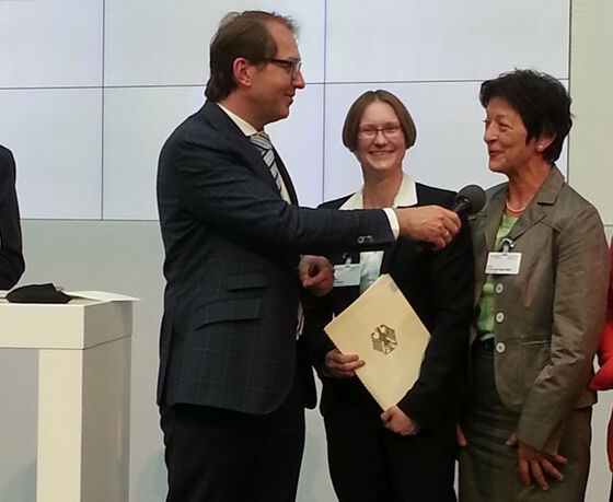 Elvira Drobinski-Weiß konnte den Bewilligungsbescheid für diesen Zuschuss im Rahmen einer Feierstunde im Bundesministerium für Verkehr und digitale Infrastruktur von Minister Alexander Dobrindt entgegen nehmen.