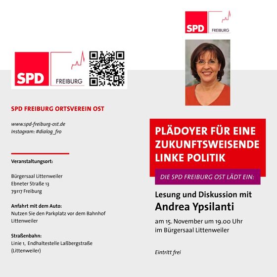 Im Anschluß an den Vortrag wird es Gelegenheit zu Fragen und Diskussion geben. Die Moderation des Abends übernehmen Helene Bergmann (OV Dreisamtal) und der Freiburger SPD-Stadtrat Walter Krögner. Der Eintritt ist frei.